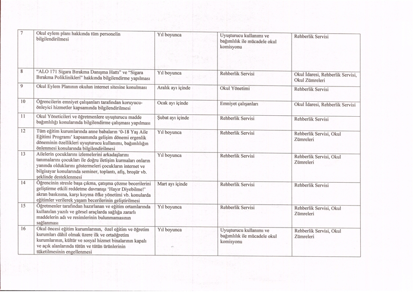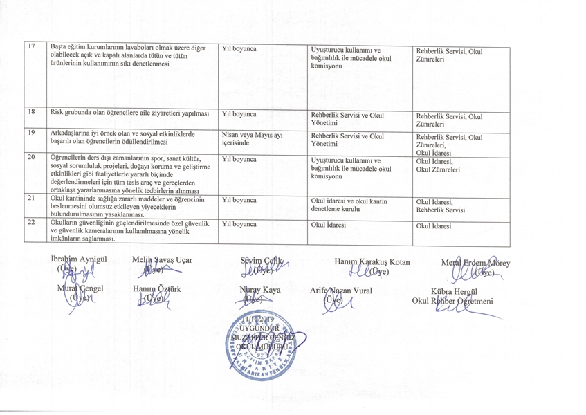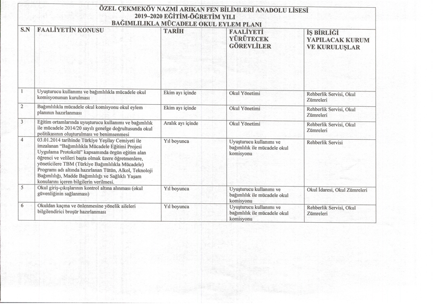 bağımlılık ile mücadele okul eylem planı 2019-2020